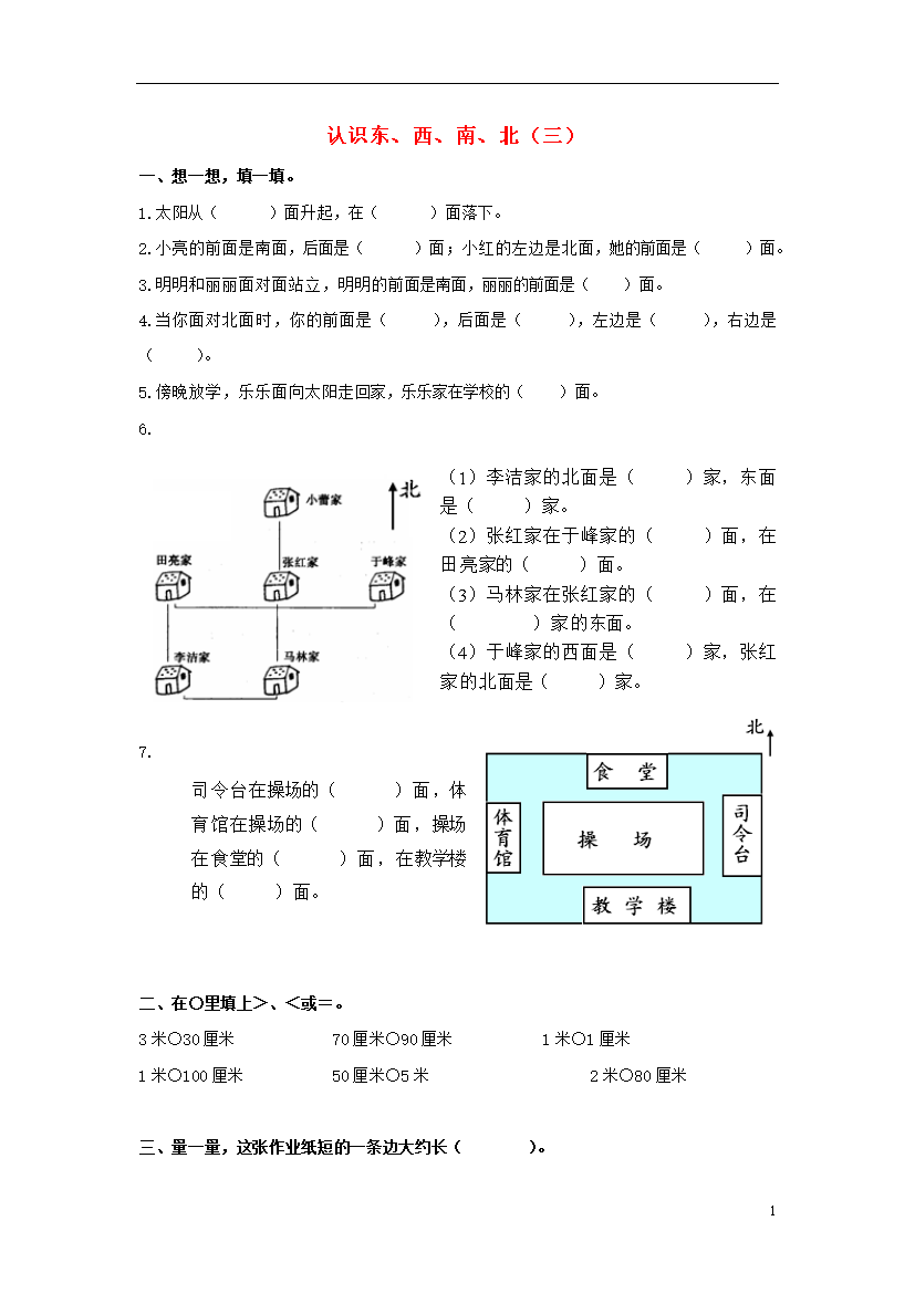 试题-全国-2017_2017春一年级数学下学期第二周周清测试题(无答案) 沪教版