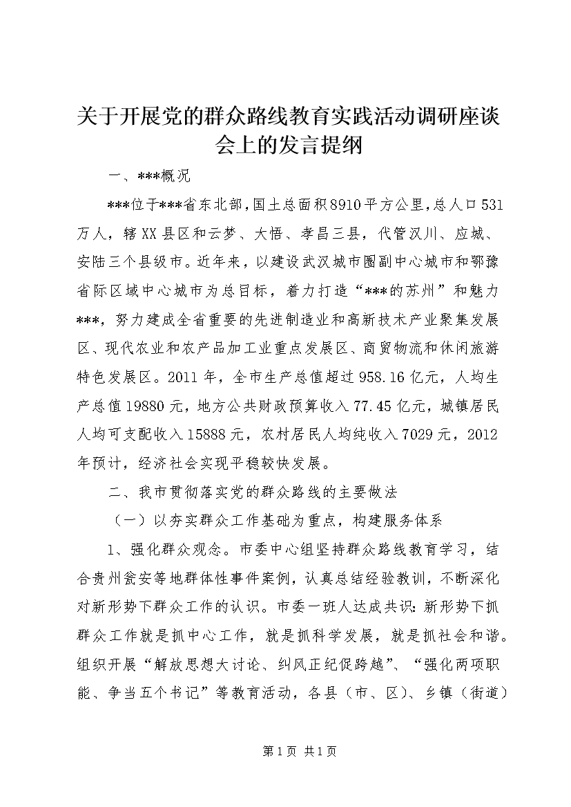关于开展党的群众路线教育实践活动调研座谈会上的发言提纲_1