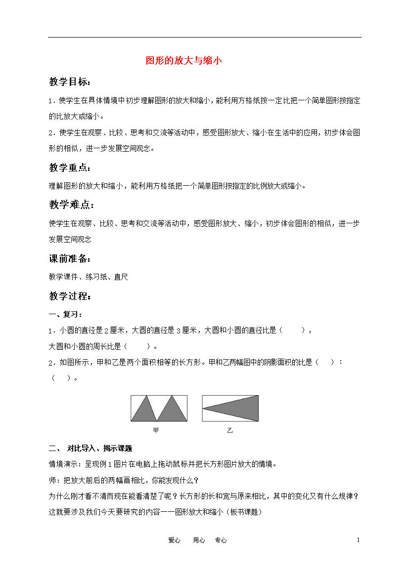教案-全国-2011_六年级数学下册 图形的放大与缩小教案 苏教版