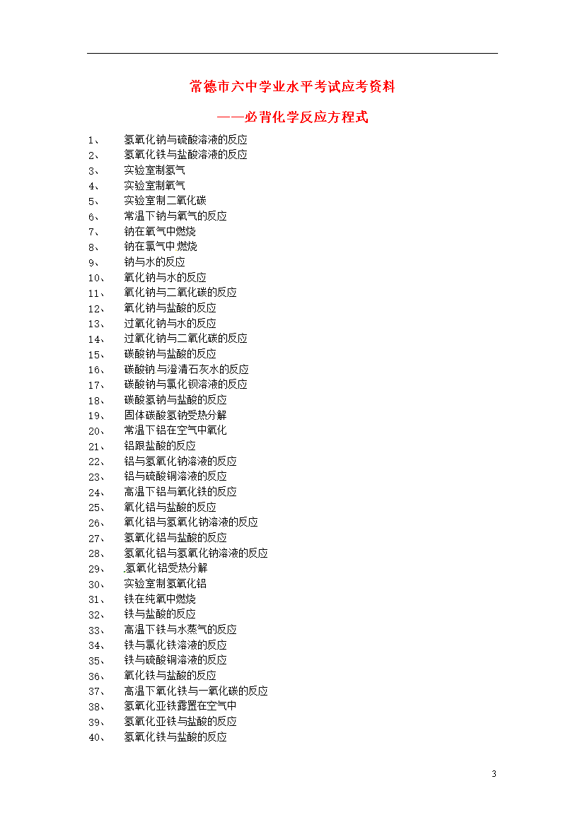 素材-湖南-2011_湖南省常德六中九年级化学学业水平考试应考资料 化学反应方程式