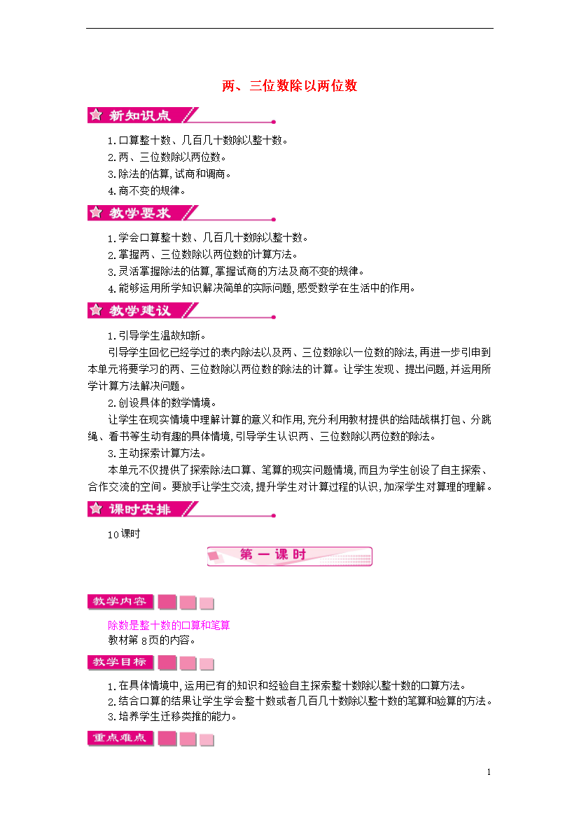 教案-全国-2016_四年级数学上册 第二单元 两、三位数除以两位数教案 苏教版