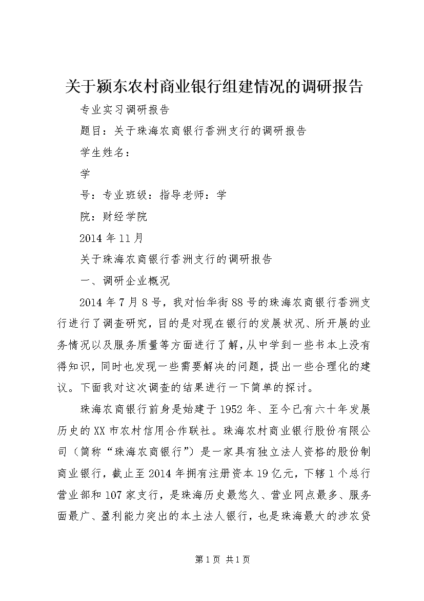关于颍东农村商业银行组建情况的调研报告 (2)
