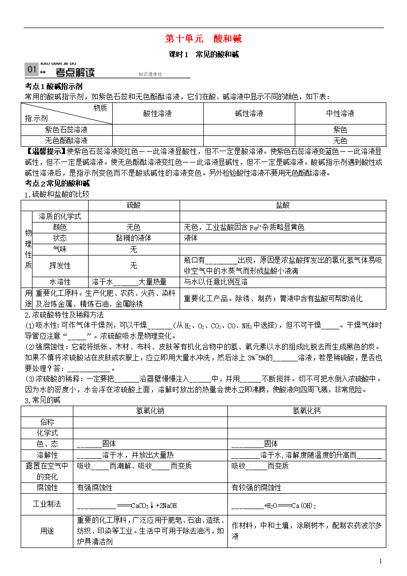 试题-全国-2015_火线100天(安徽专版)2016中考化学 教材考点梳理 第十单元 酸和碱复习