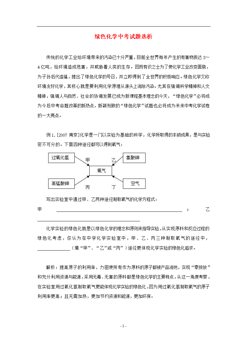 试题-全国-2010_九年级化学中考专题复习 绿色化学中考试题选析全国通用