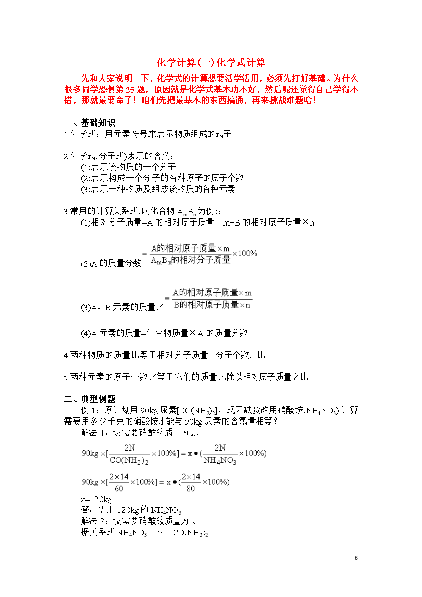 试题-全国-2010_中考化学 第六天化学知识点之化学式计算和溶质质量分数计算