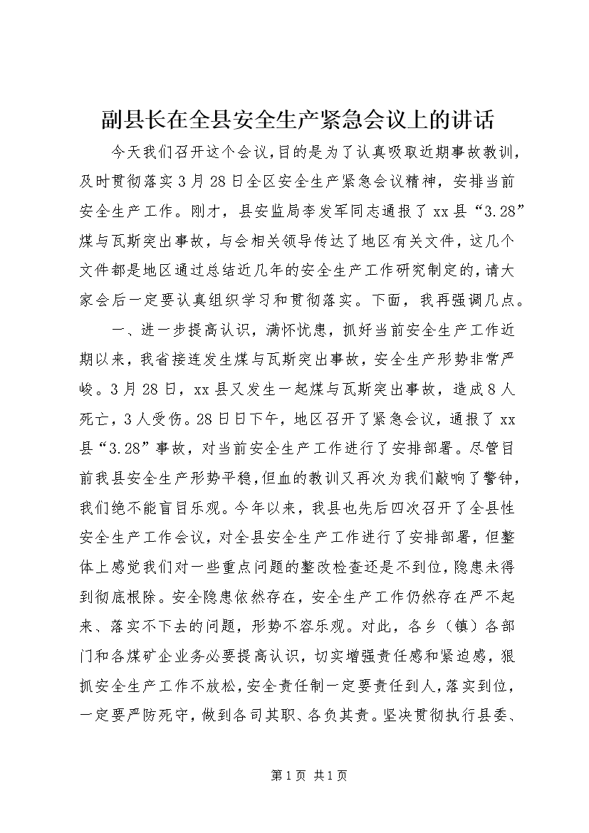 副县长在全县安全生产紧急会议上的讲话 (3)