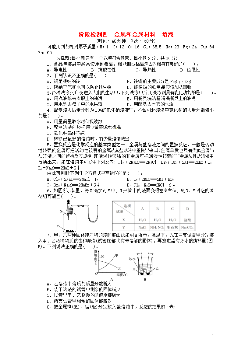 试题-安徽-2014_(安徽专用)2013年中考化学总复习阶段检测四