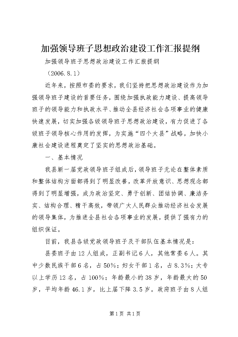加强领导班子思想政治建设工作汇报提纲 (6)
