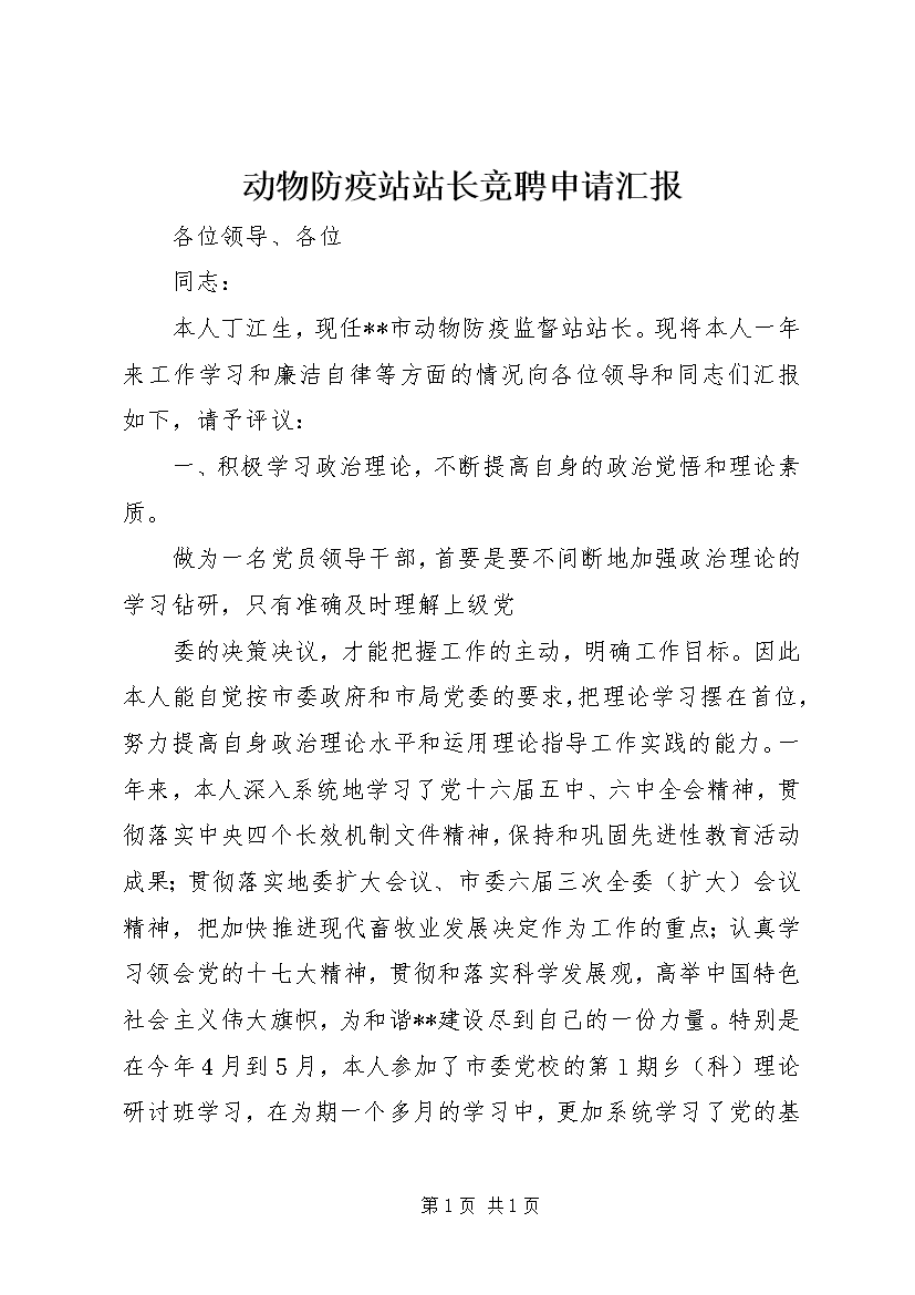 动物防疫站站长竞聘申请汇报 (2)