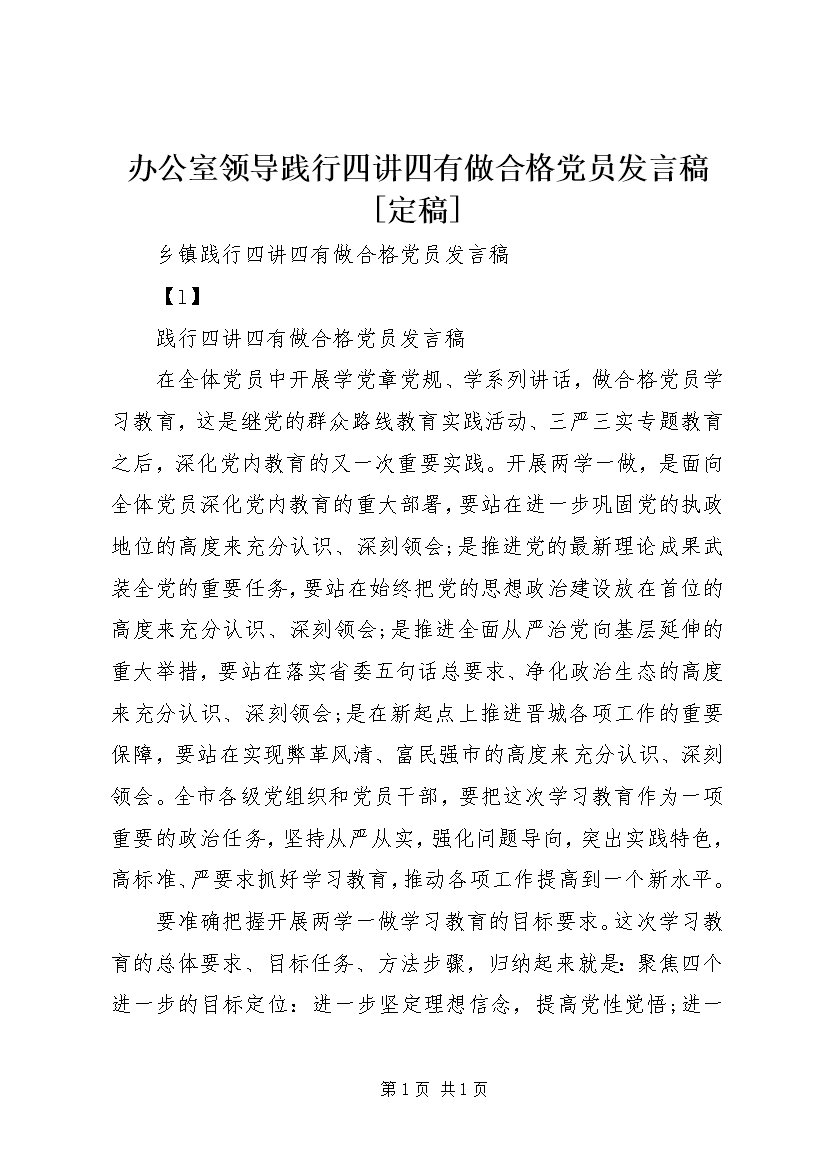 办公室领导践行四讲四有做合格党员发言稿[定稿] (5)