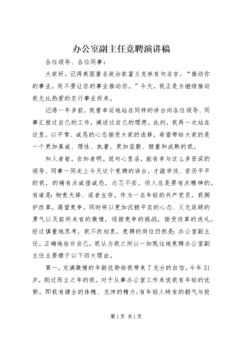 办公室副主任竟职演讲稿 (4)