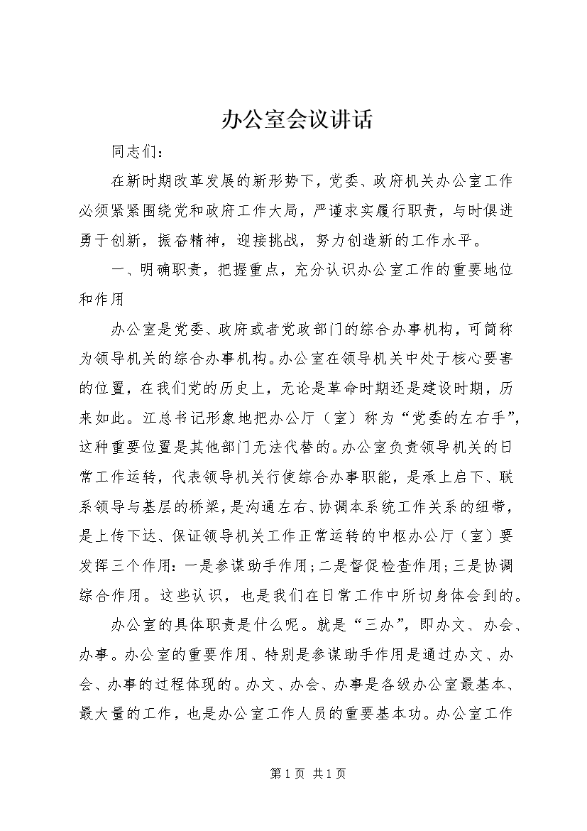 办公室会议讲话 (2)