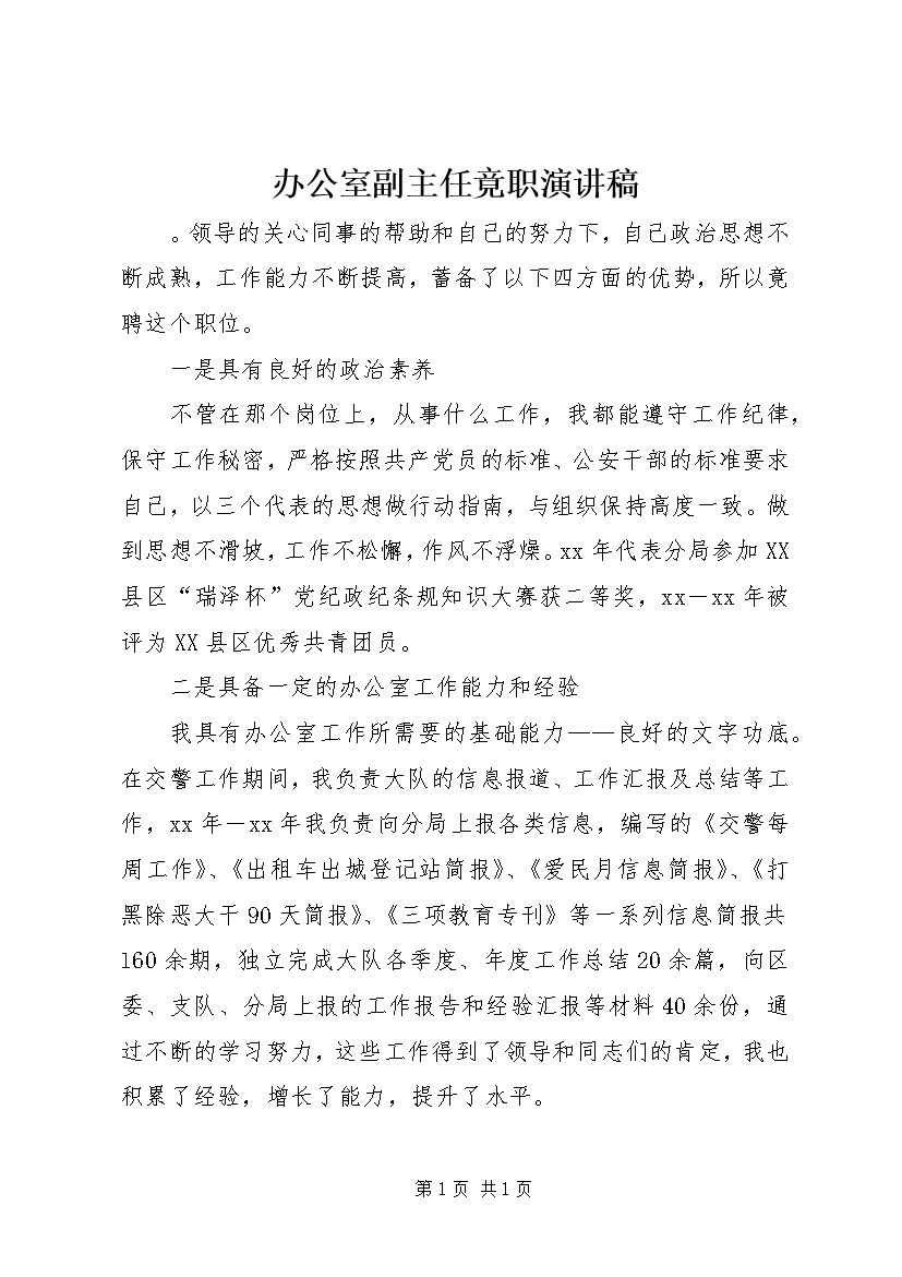 办公室副主任竞聘演讲稿 (31)