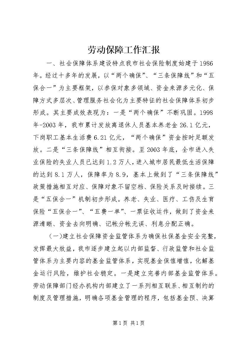 劳动保障工作汇报 (4)