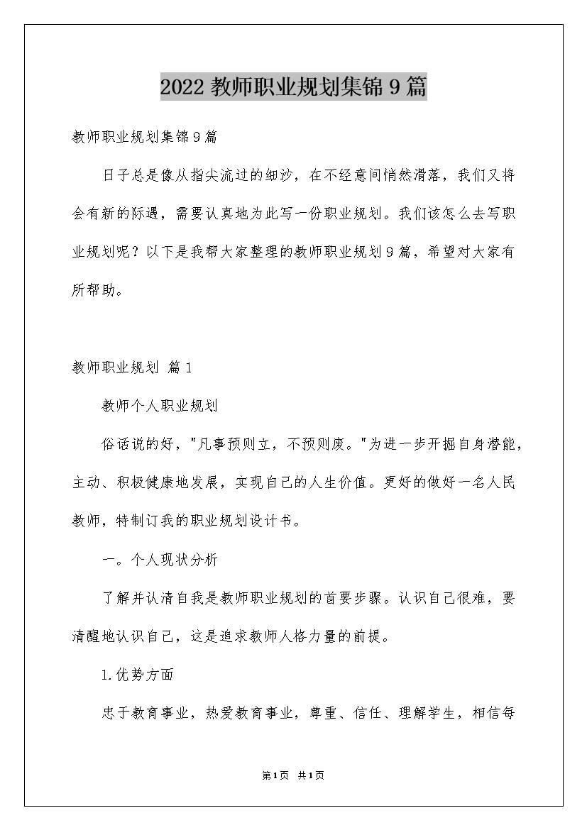 2022教师职业规划集锦9篇