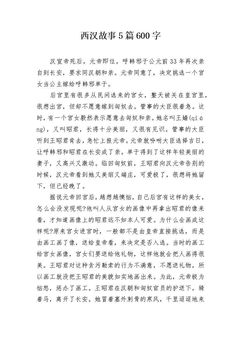 西汉故事5篇600字