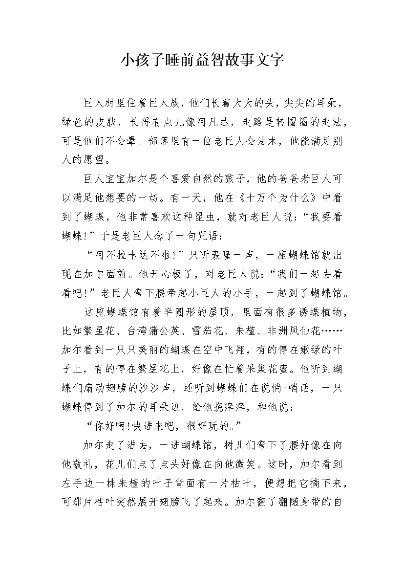 小孩子睡前益智故事文字