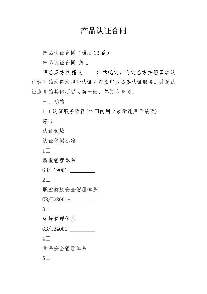 产品认证合同