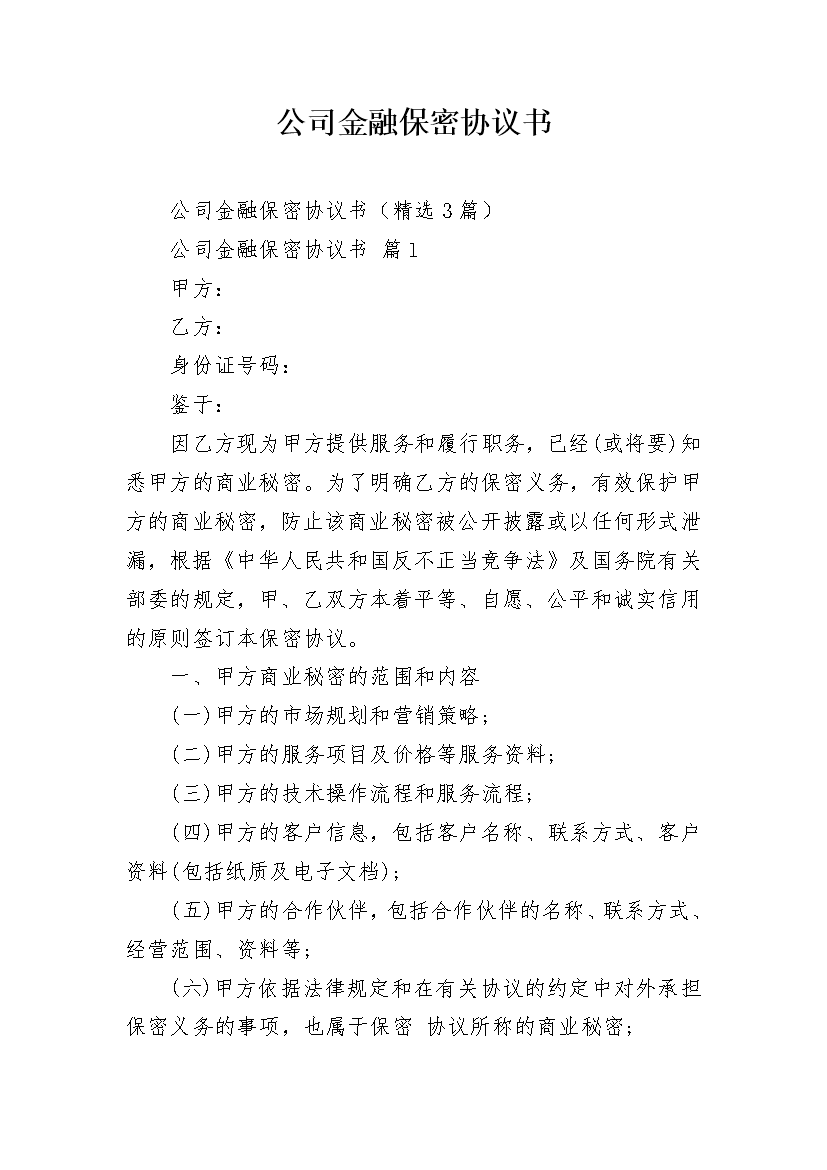 公司金融保密协议书