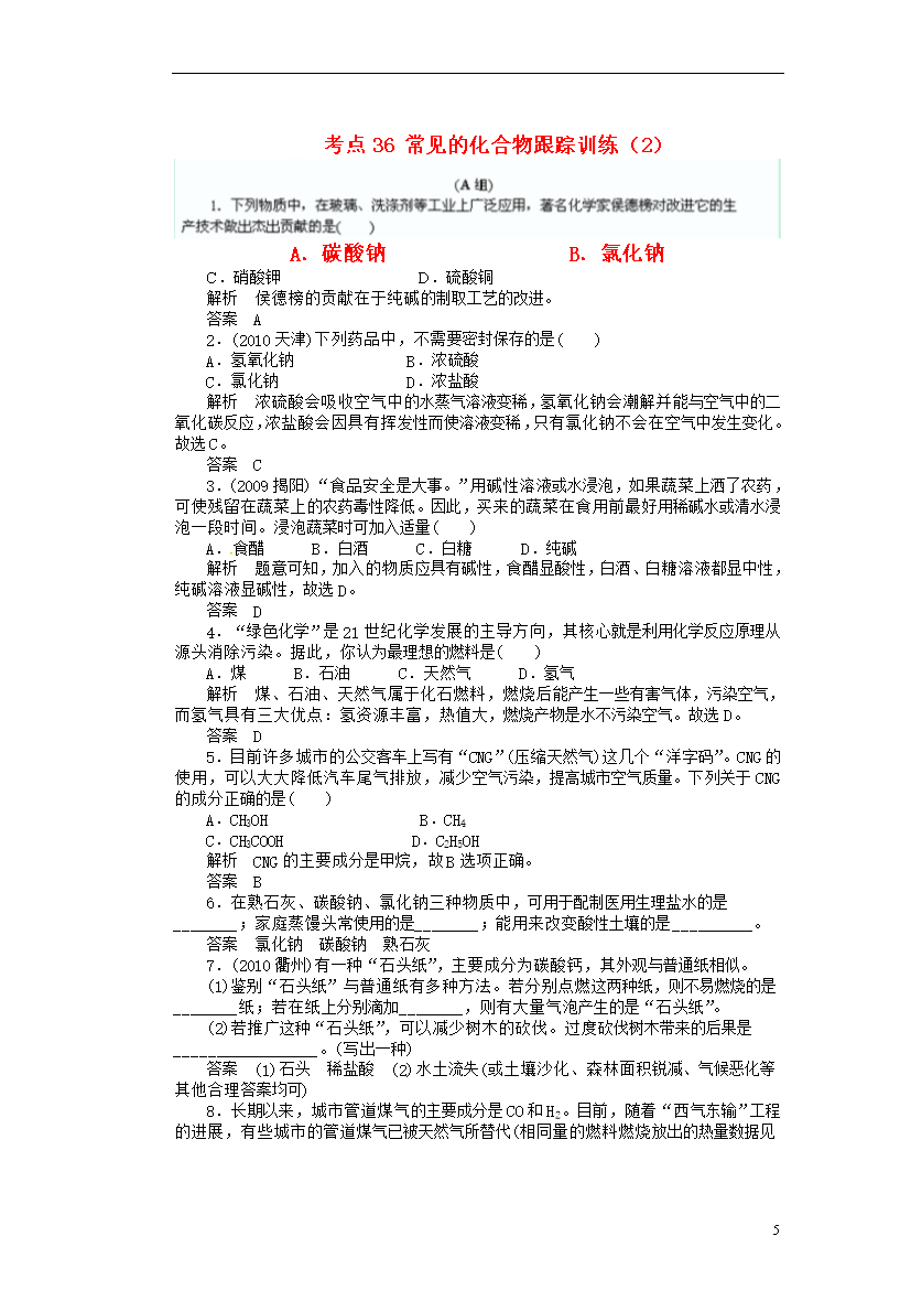试题-广东-2014_广东省深圳市福田云顶学校中考化学复习 考点36 常见的化合物跟踪训练(2)