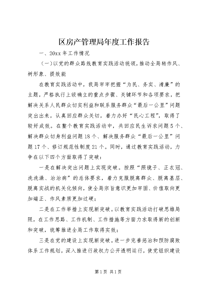区房产管理局年度工作报告