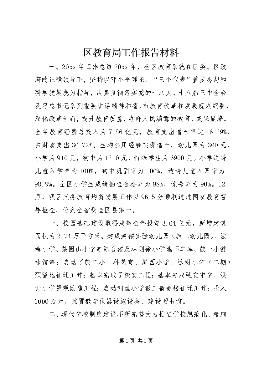 区教育局工作报告材料 (6)