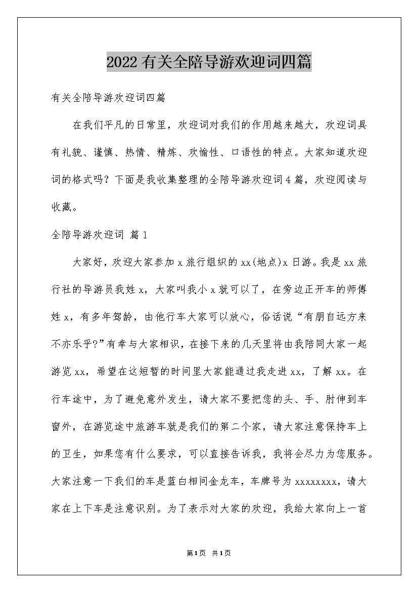 2022有关全陪导游欢迎词四篇