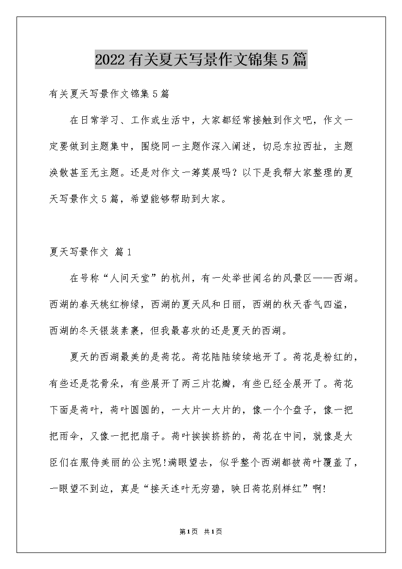 2022有关夏天写景作文锦集5篇