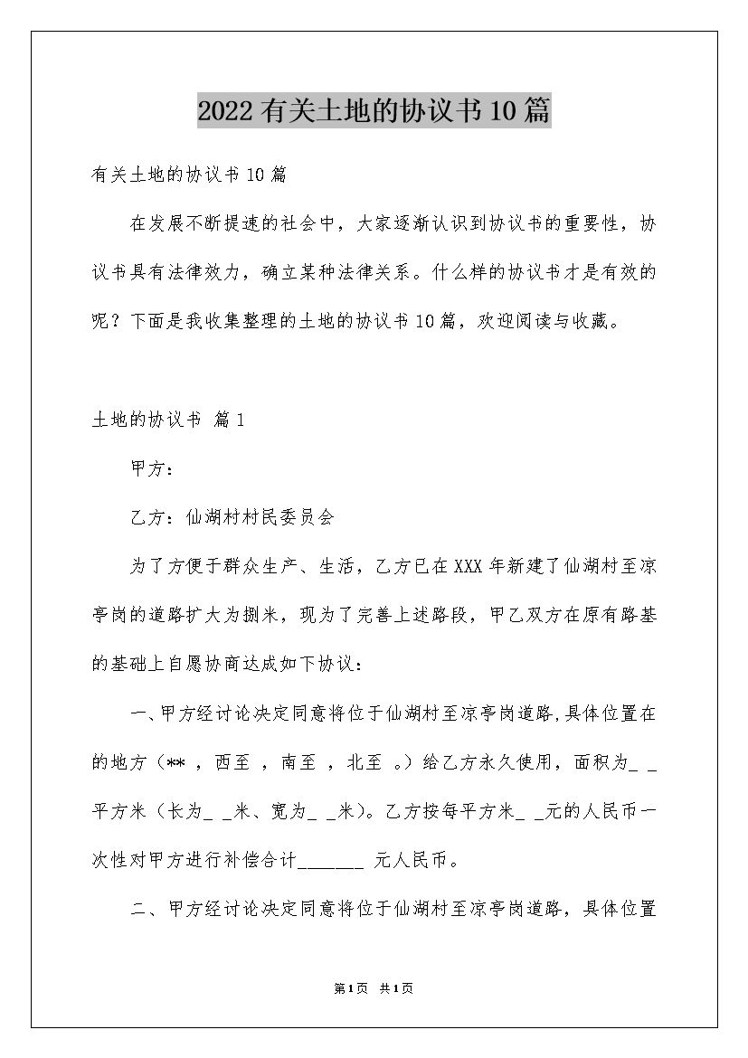2022有关土地的协议书10篇