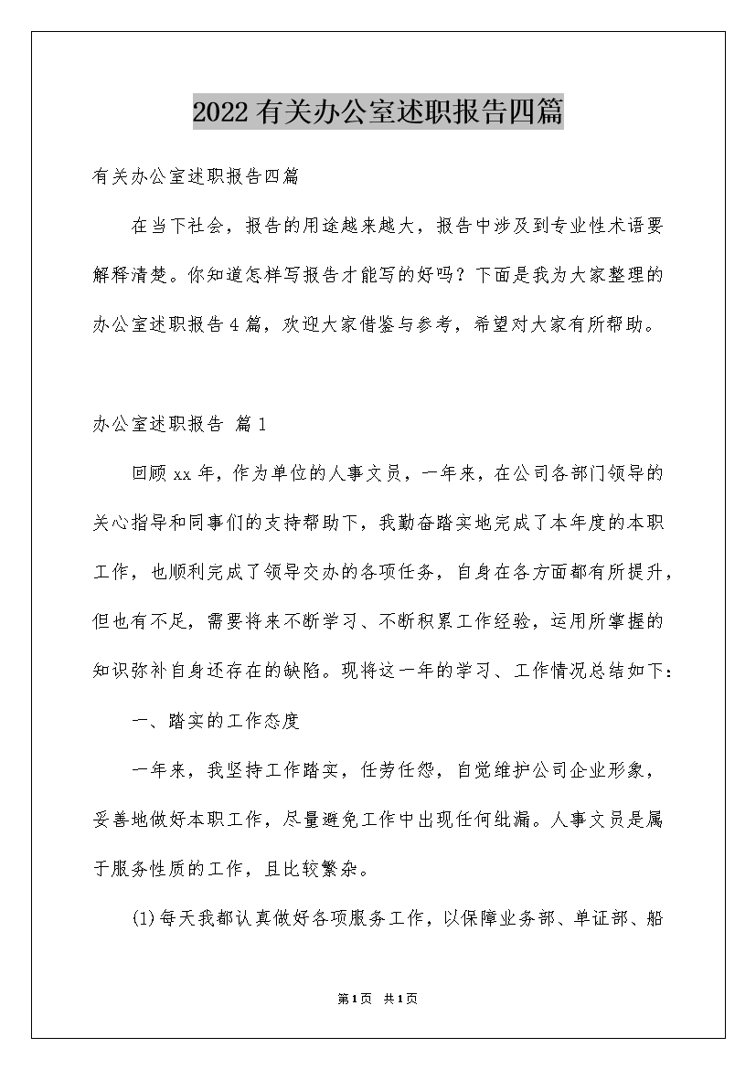 2022有关办公室述职报告四篇