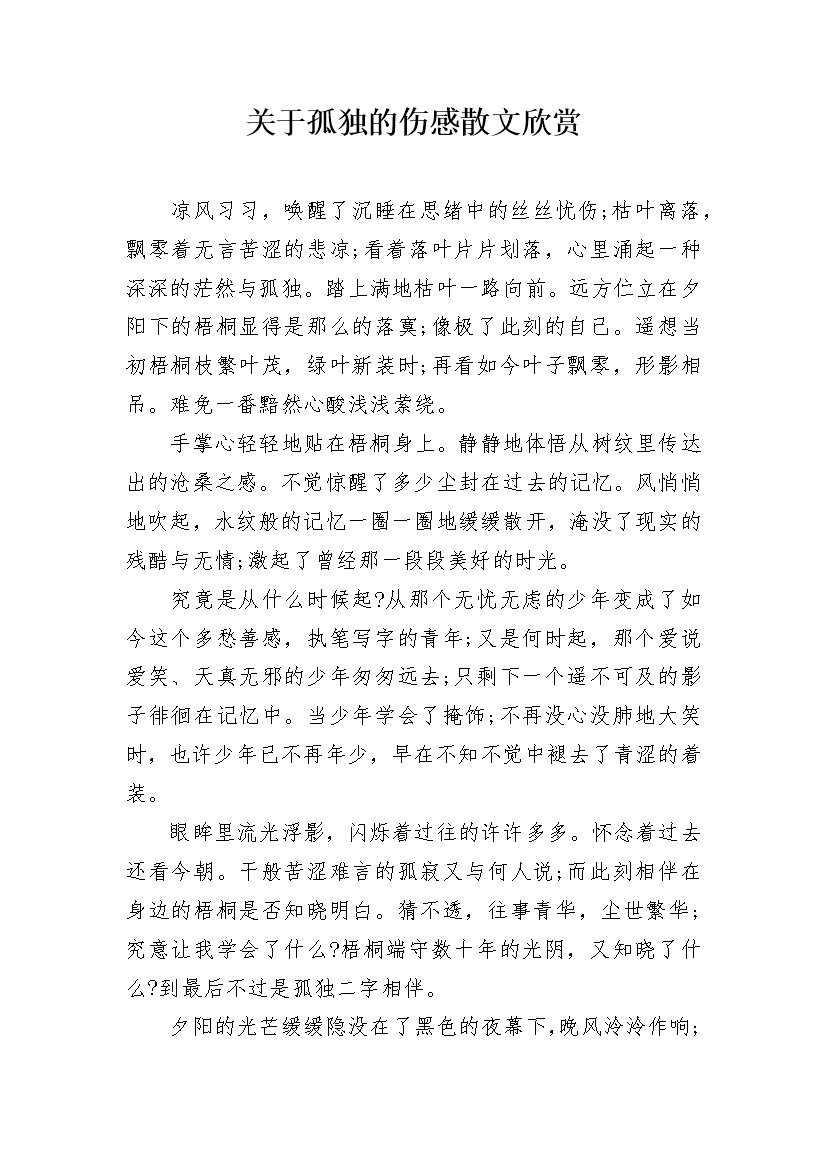 关于孤独的伤感散文欣赏
