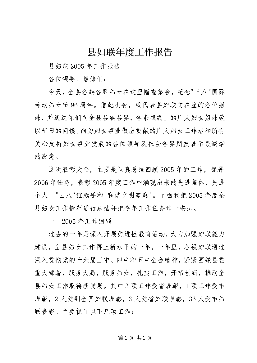 县妇联年度工作报告