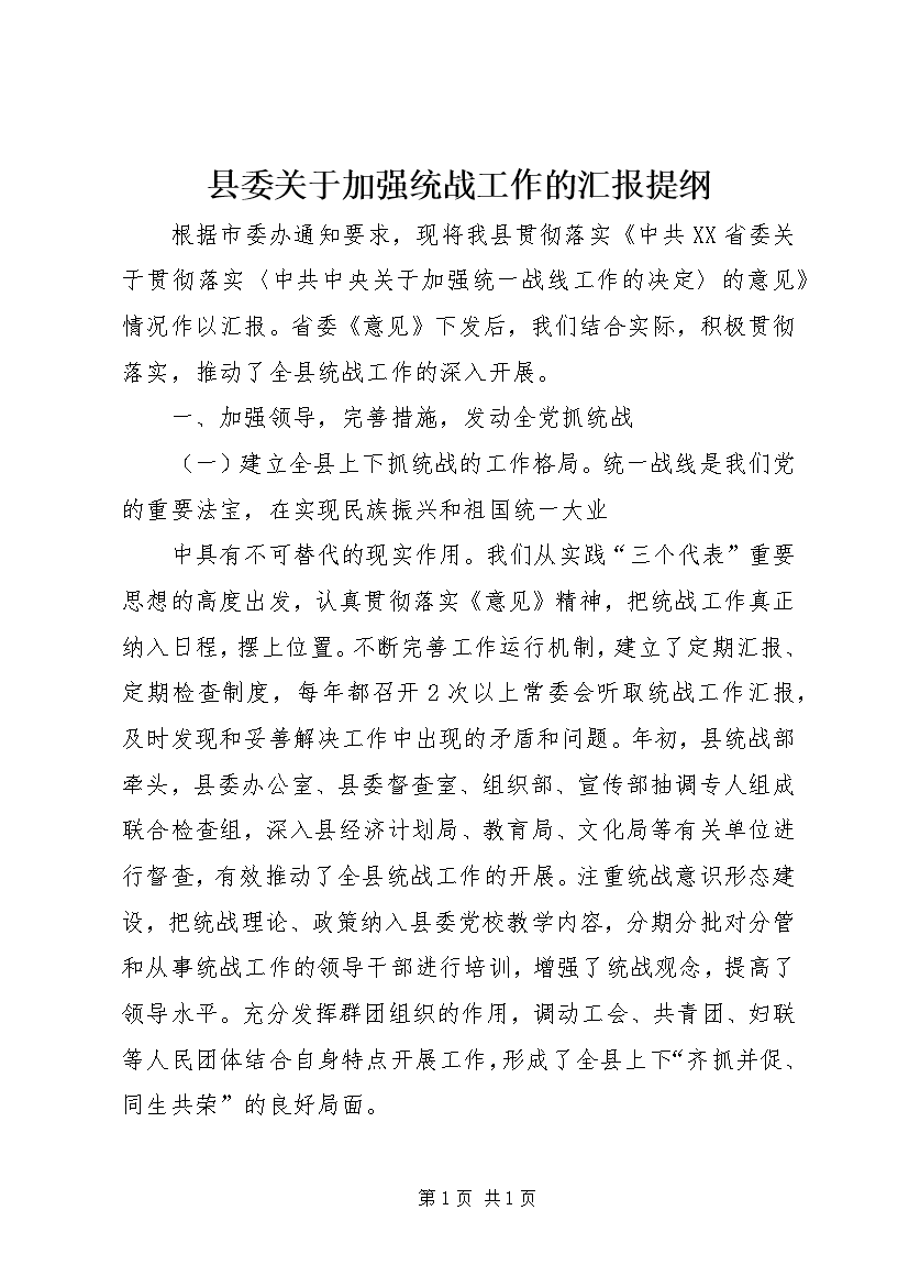 县委关于加强统战工作的汇报提纲 (8)