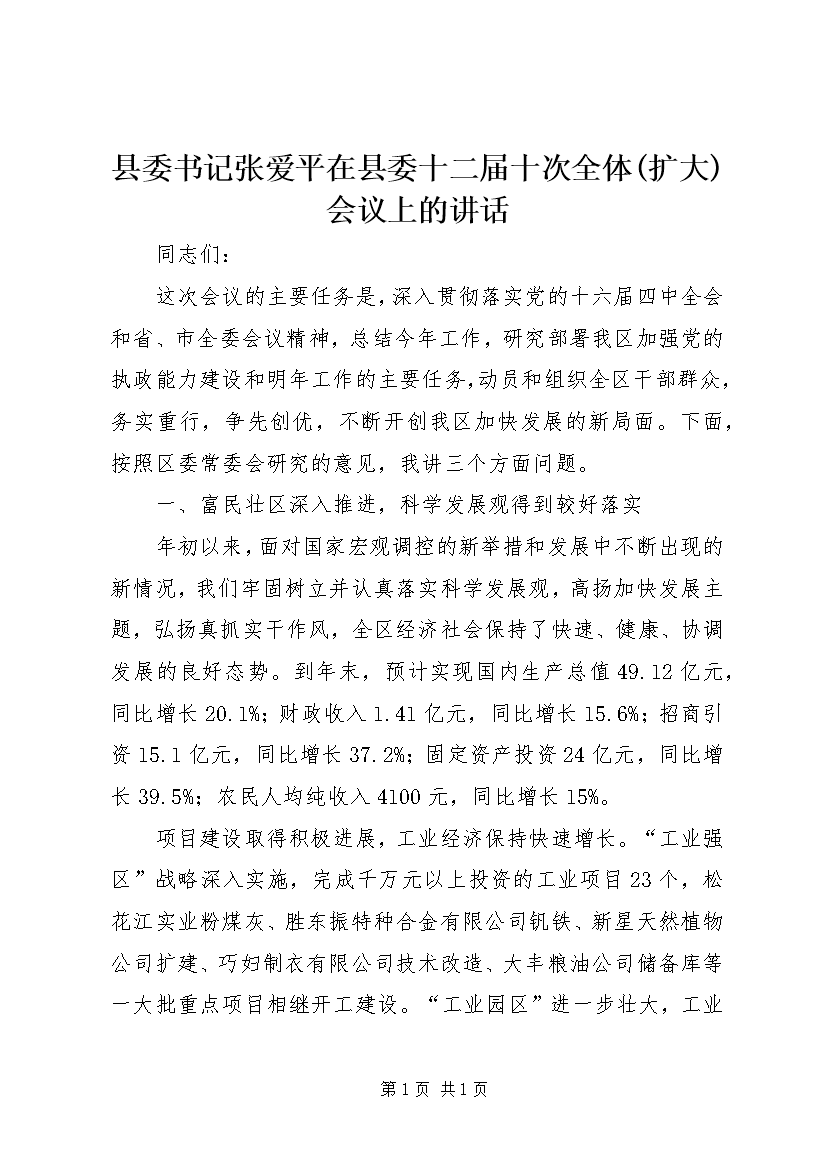 县委书记张爱平在县委十二届十次全体(扩大)会议上的讲话 (3)