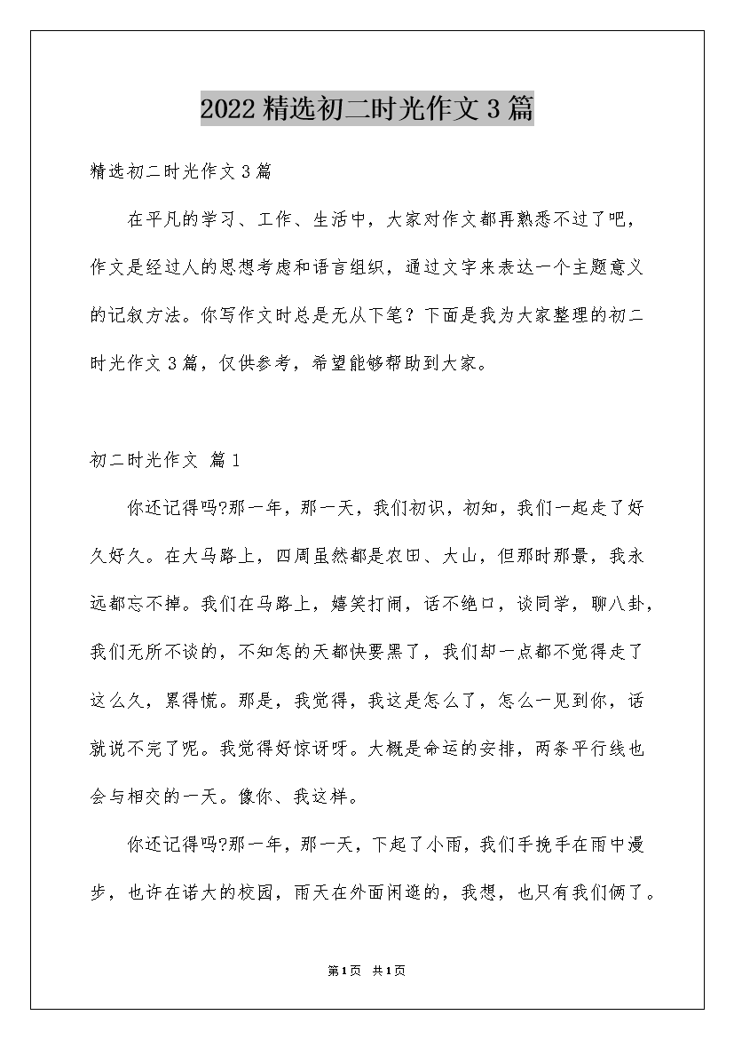 2022精选初二时光作文3篇