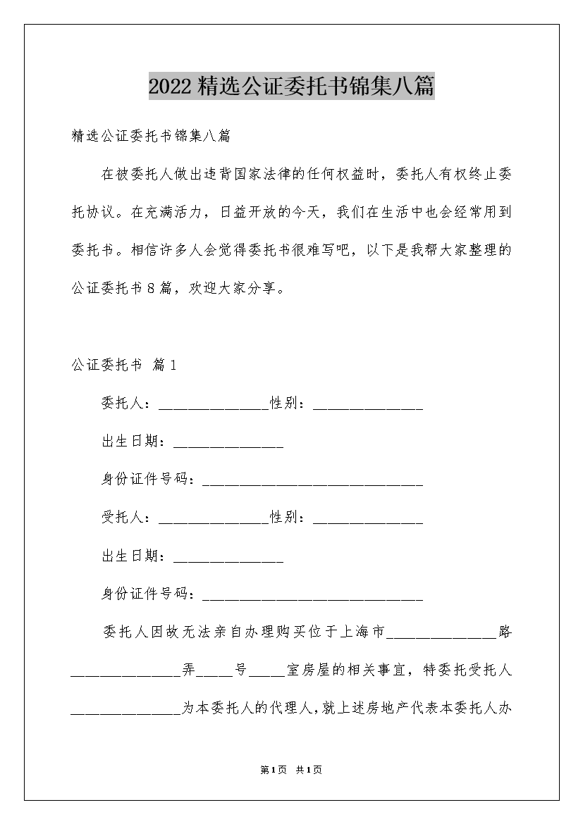 2022精选公证委托书锦集八篇