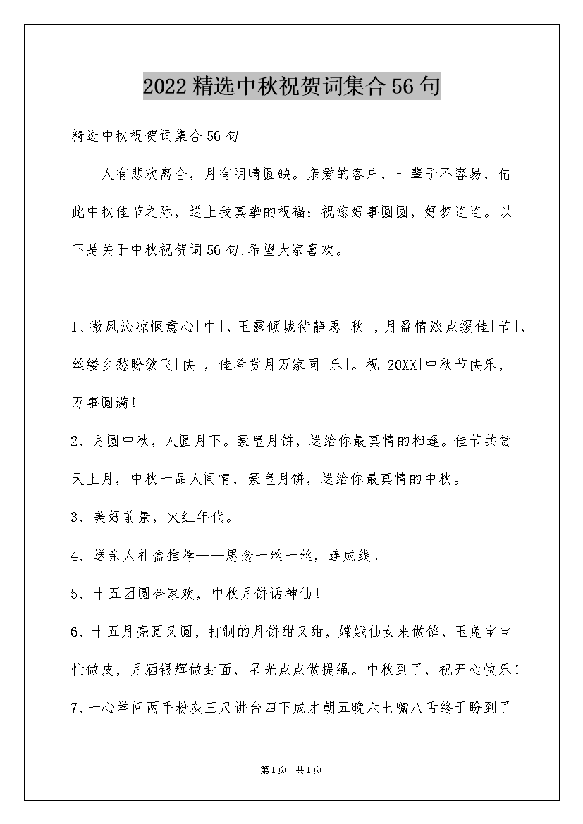 2022精选中秋祝贺词集合56句