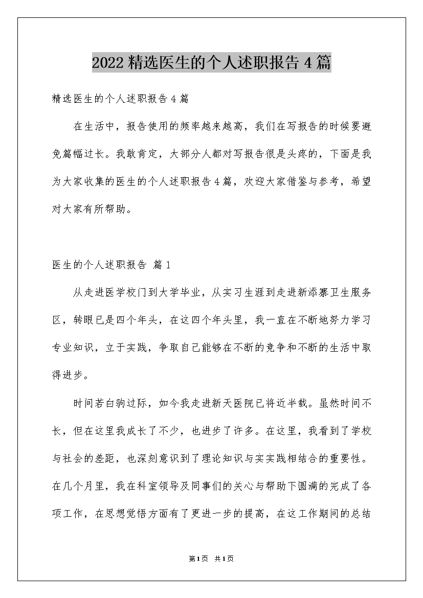 2022精选医生的个人述职报告4篇