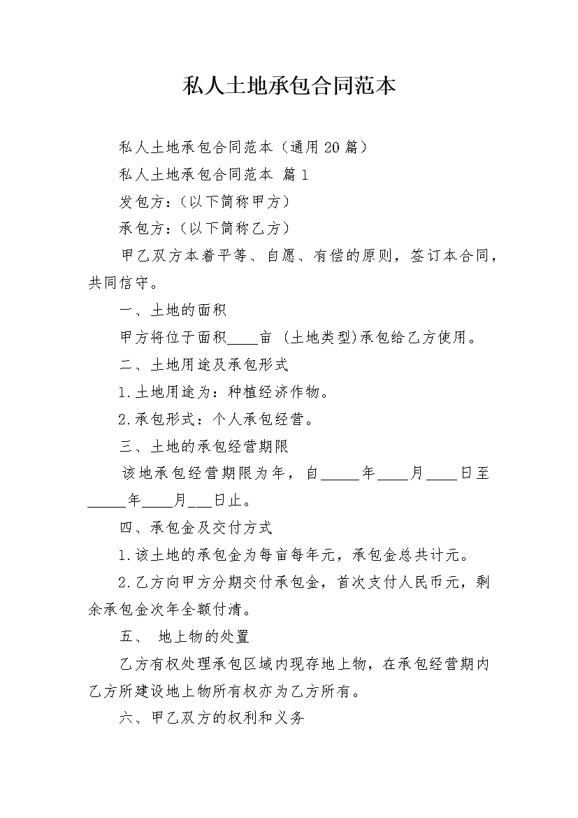 私人土地承包合同范本