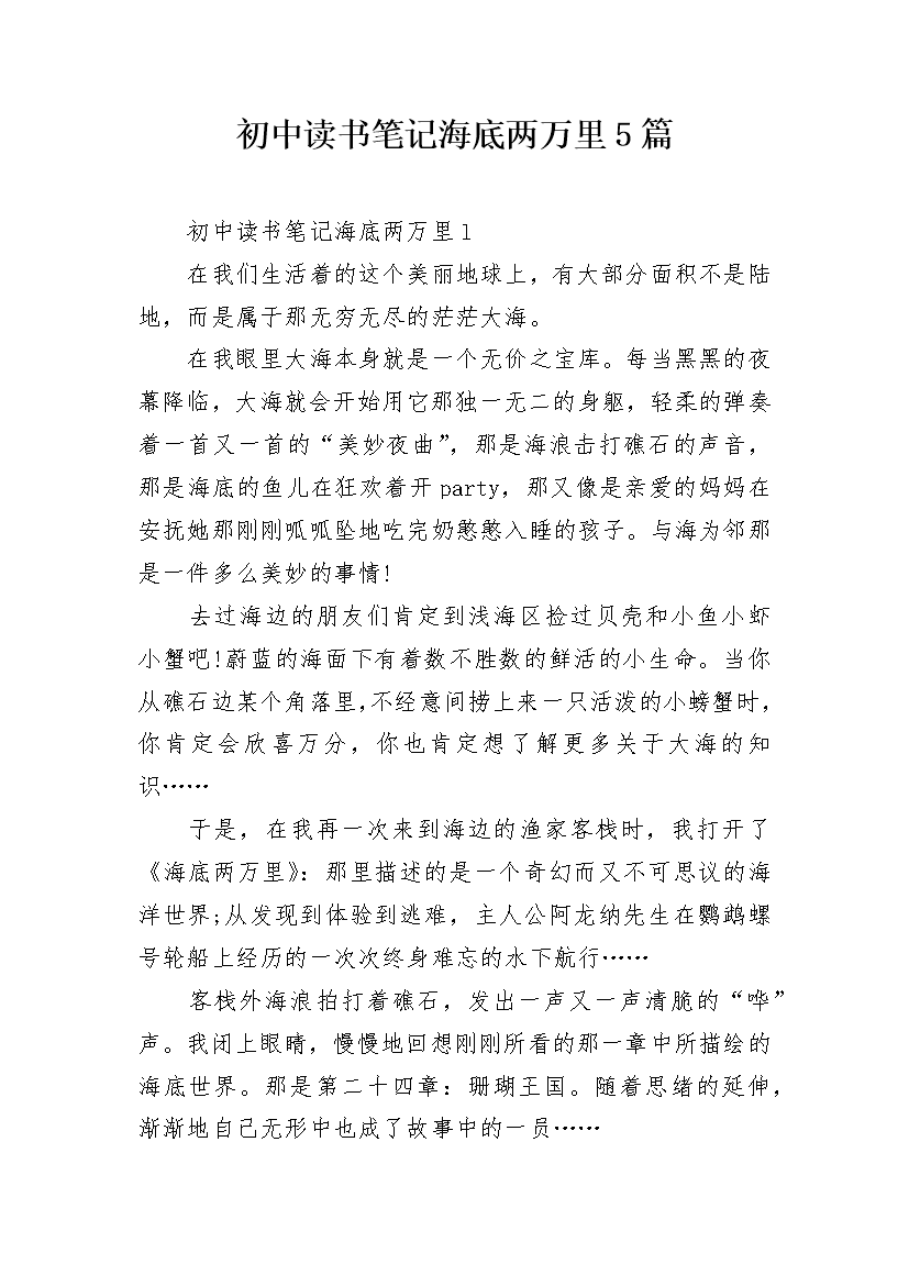 初中读书笔记海底两万里5篇