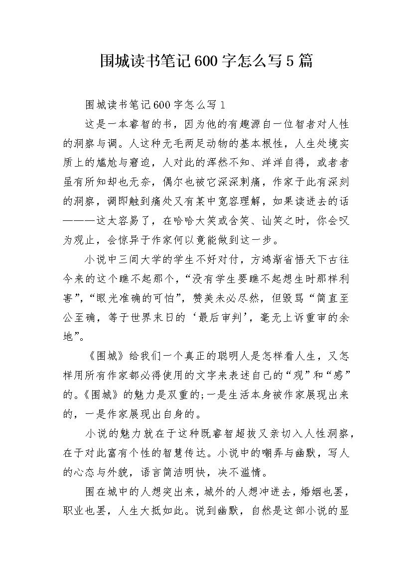 围城读书笔记600字怎么写5篇