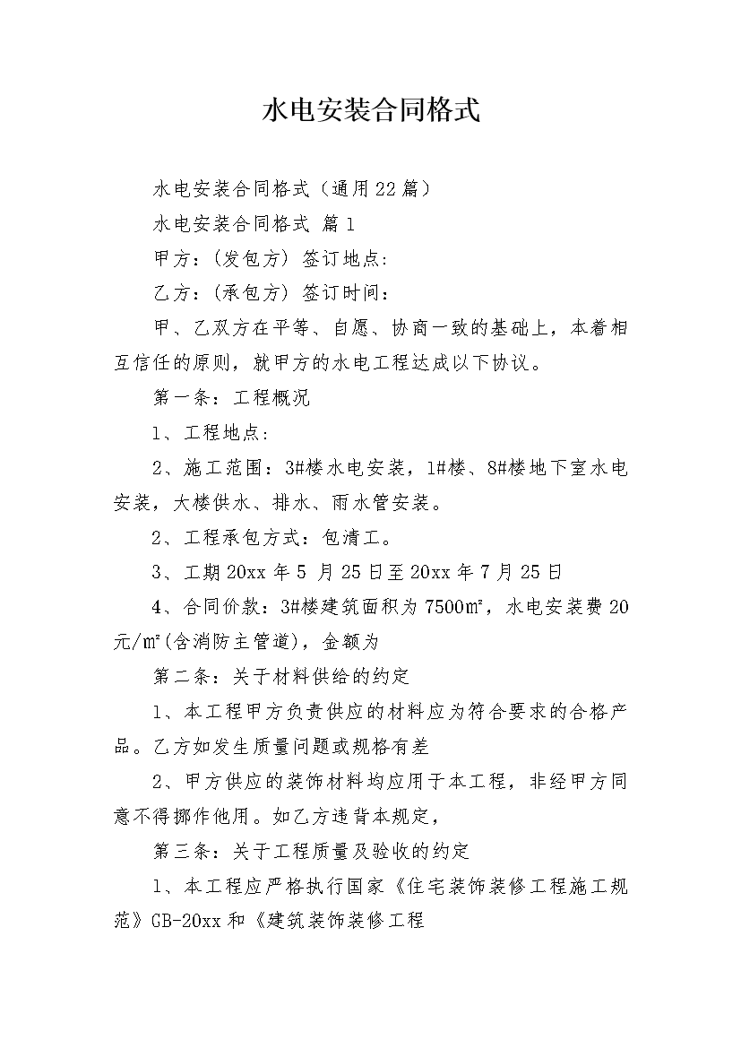 水电安装合同格式