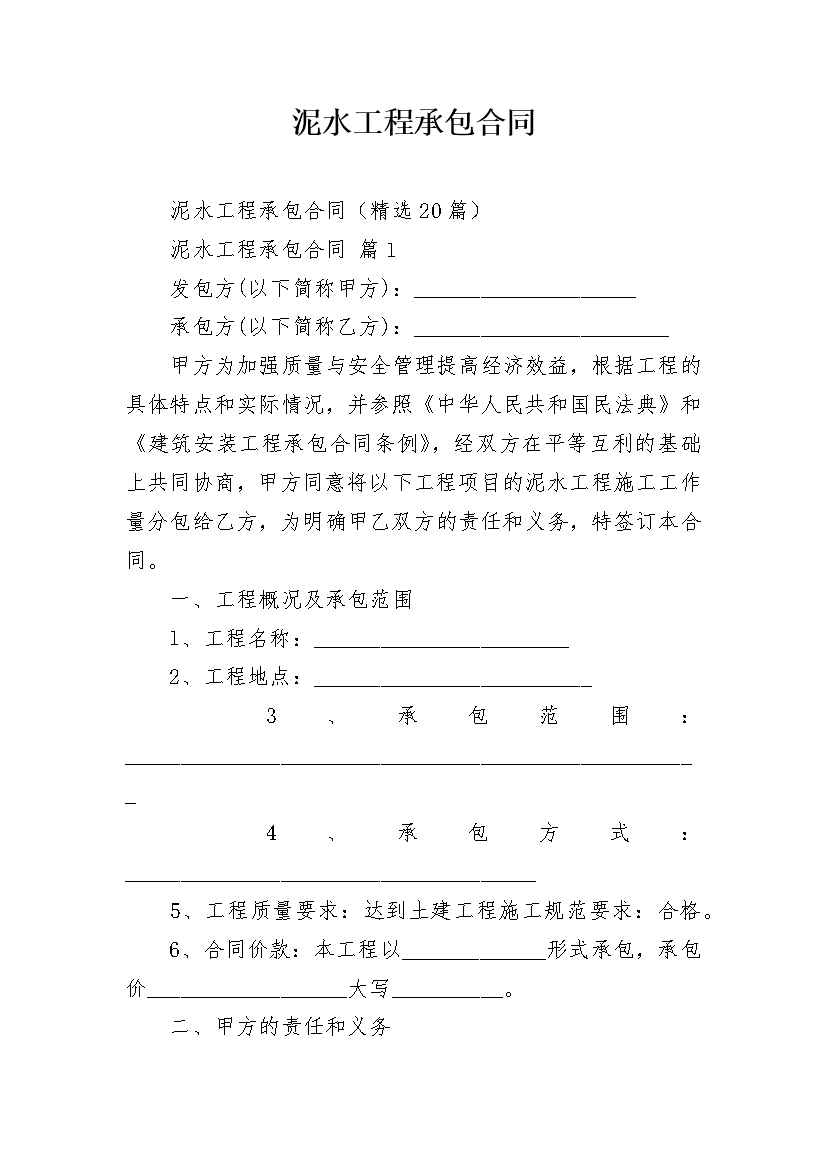 泥水工程承包合同