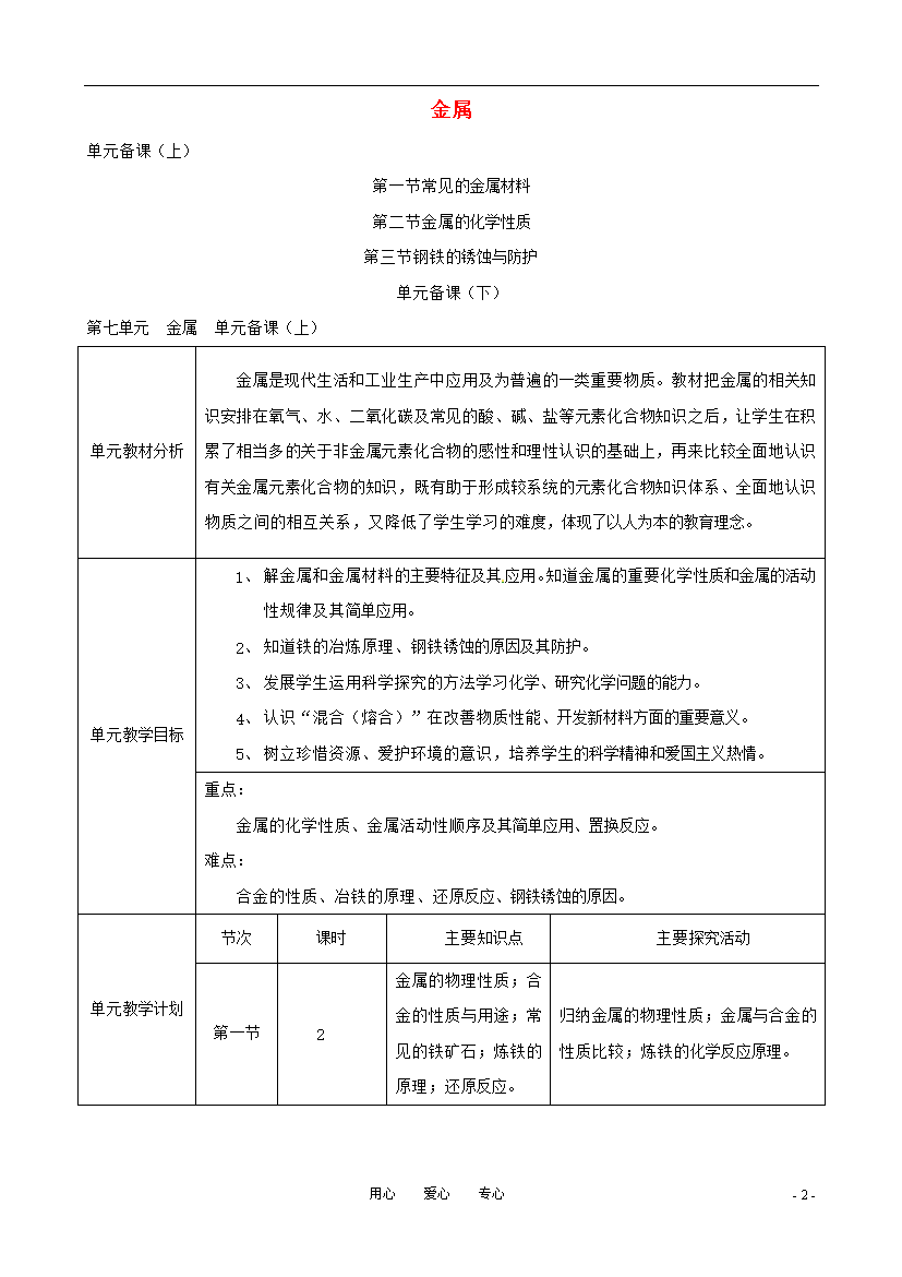 教案-全国-2011_九年级化学 第7单元 金属精品教案 鲁教版