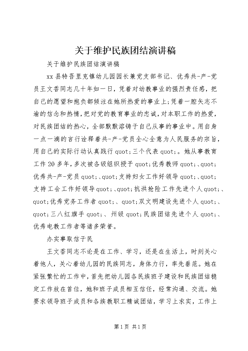 关于维护民族团结演讲稿 (2)