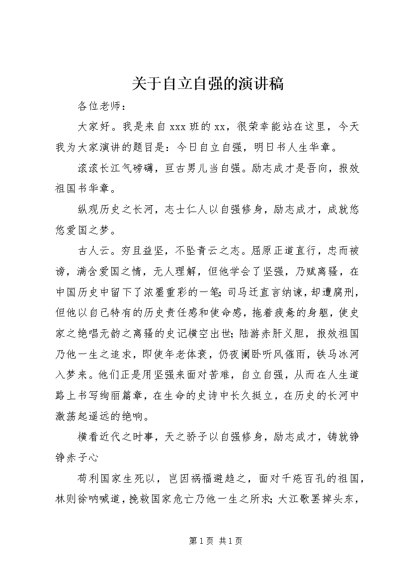 关于自立自强的演讲稿