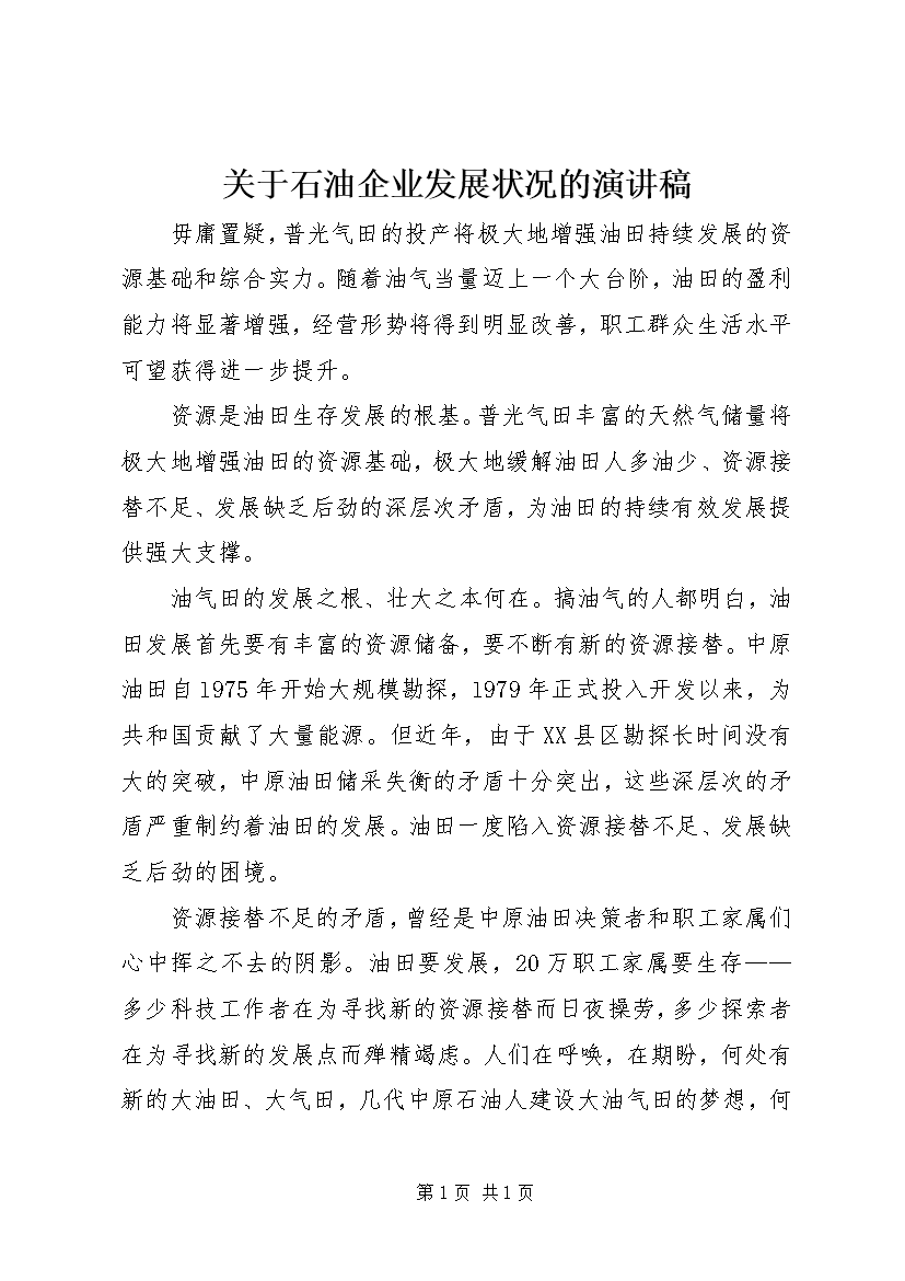 关于石油企业发展状况的演讲稿