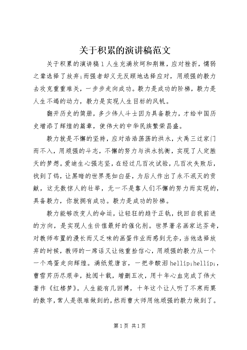 关于积累的演讲稿范文
