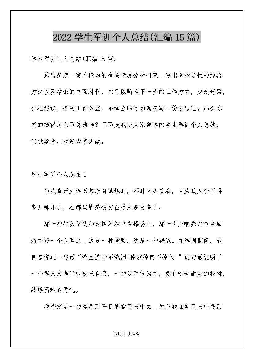 2022学生军训个人总结(汇编15篇)