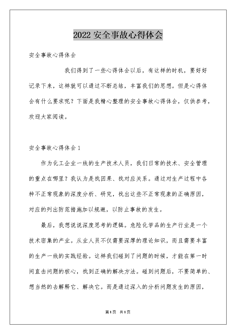 2022安全事故心得体会